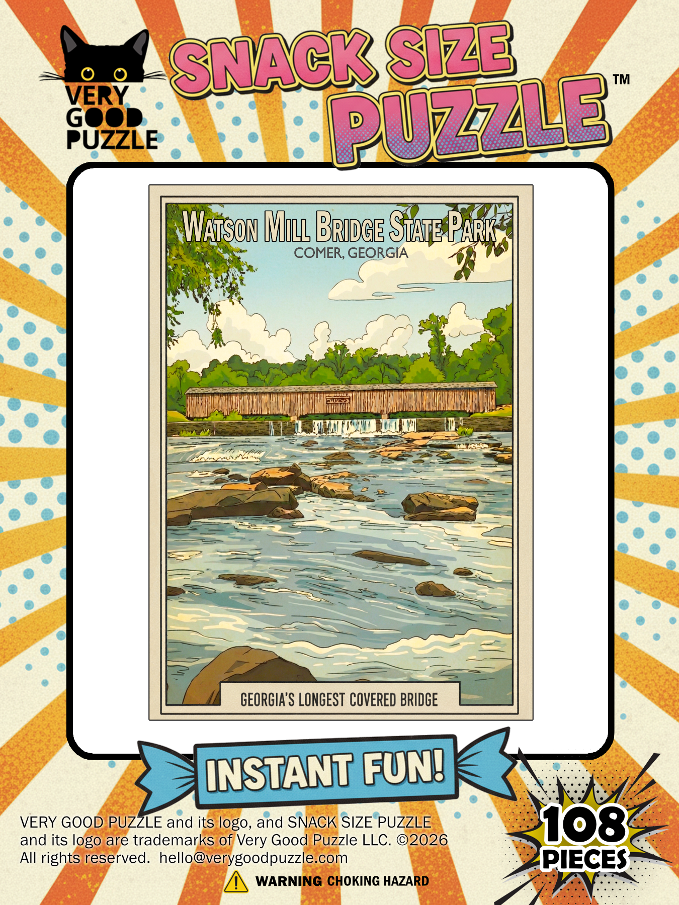 • 108 Piece Jigsaw Puzzle in 6" x 9" colorful stand up pouch with hang hole